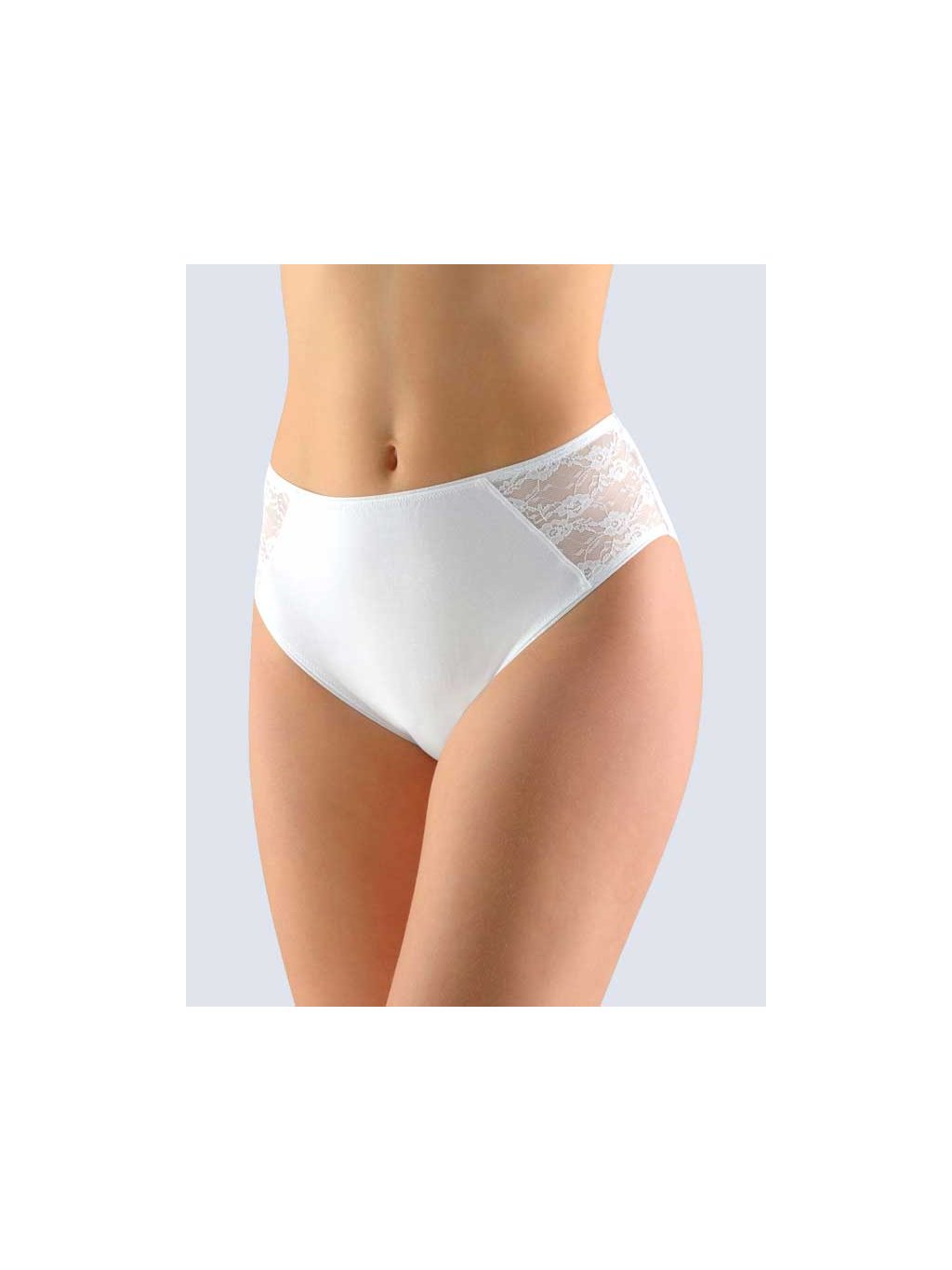 Kalhotky klasického střihu, dámské šité prádlo. V pasovém kraji je našitá pruženka s ozdobným krajem. V nohavičkách je našitá pruženka s ozdobným krajem. Kalhotky jsou zdobené krajkovou vsadkou na bocích. Kalhotky jsou jednobarevné.