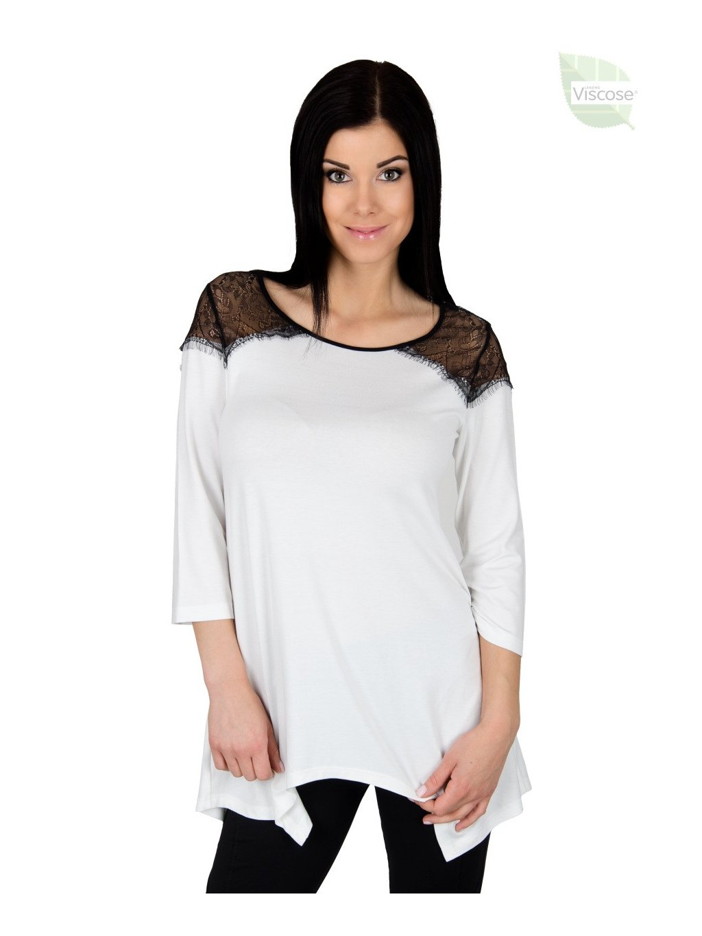 Dámská halenka asymetrického střihu s třičtvrtečním rukávem je ozdobená jemnou krajkou na ramenou. Halenka je ušitá z příjemného viskózového úpletu, který nabízí dostatečný komfort při nošení během celého dne.Buďte první, kdo napíše příspěvek k této položce.