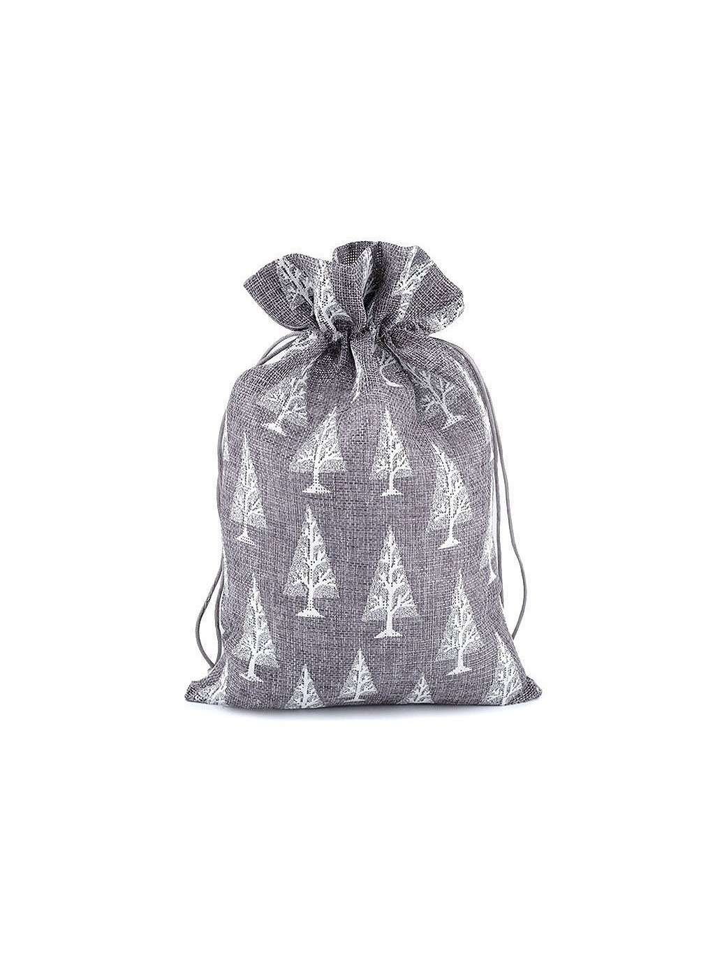 Dárkový pytlík stromeček 20x30 cm imitace juty šedo-stříbrný