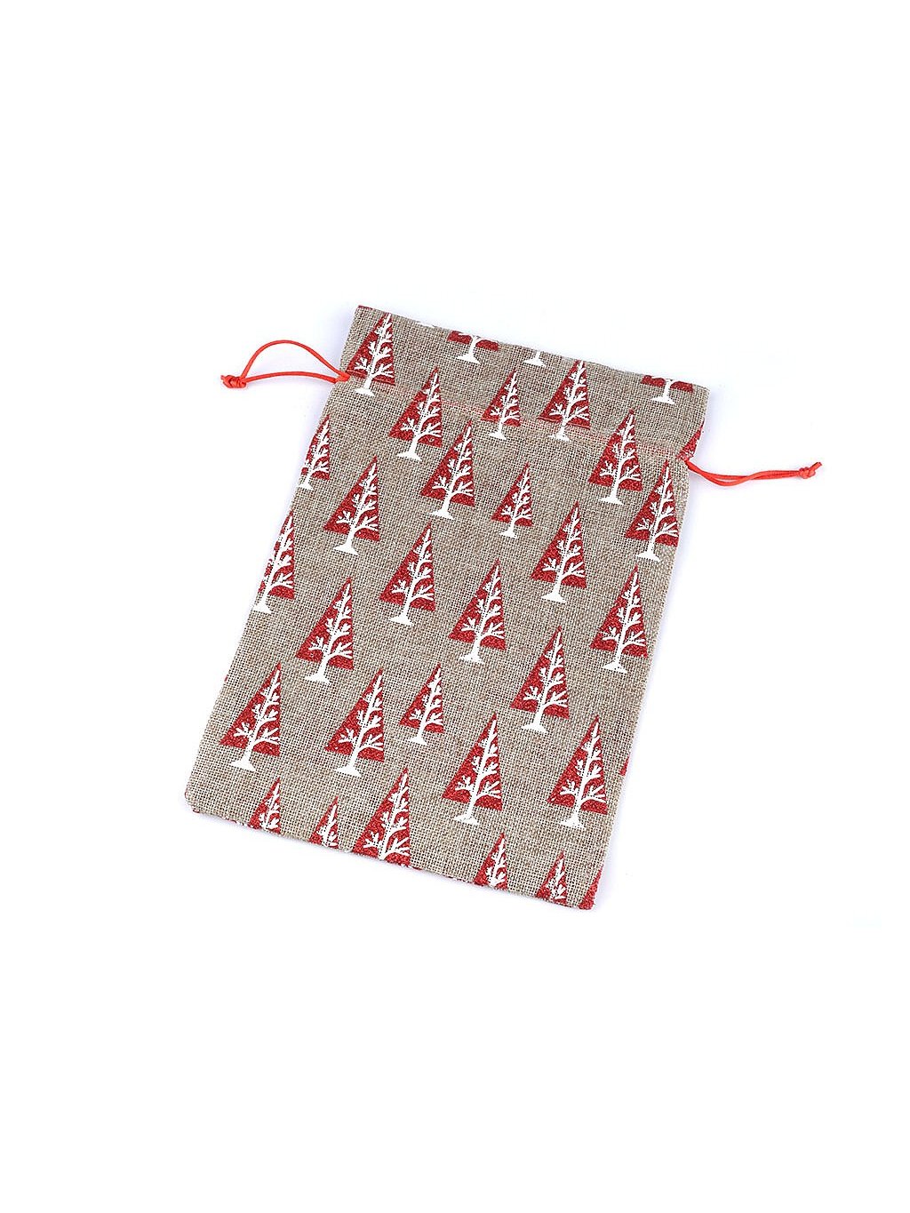 Dárkový pytlík s potiskem stromečků je ideální dekorací na Vánoce. Pytlík je zajímavý materiálem, který imituje jutu, a třpytivým potiskem stromečků s glitry. Stahuje se pomocí saténové šňůrky. Do pytlíku můžete schovat drobné dárky nebo jej použít jako vánoční dekoraci.