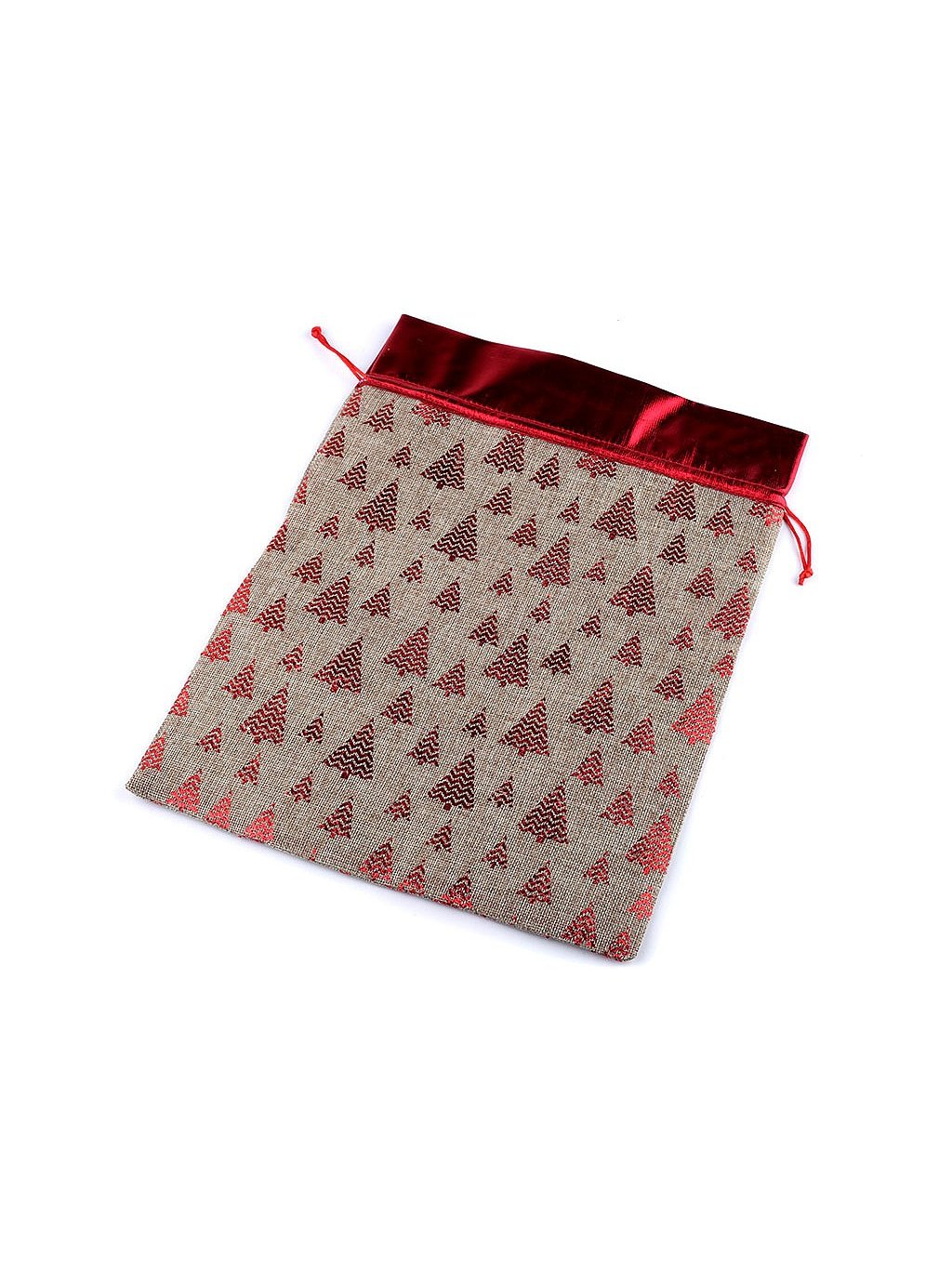 Dárkový pytlík stromeček velký 30x40 cm imitace juty režno-červená barva