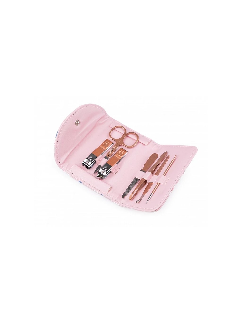 Manikúra v růžovém pouzdře s květy 7 nástrojů