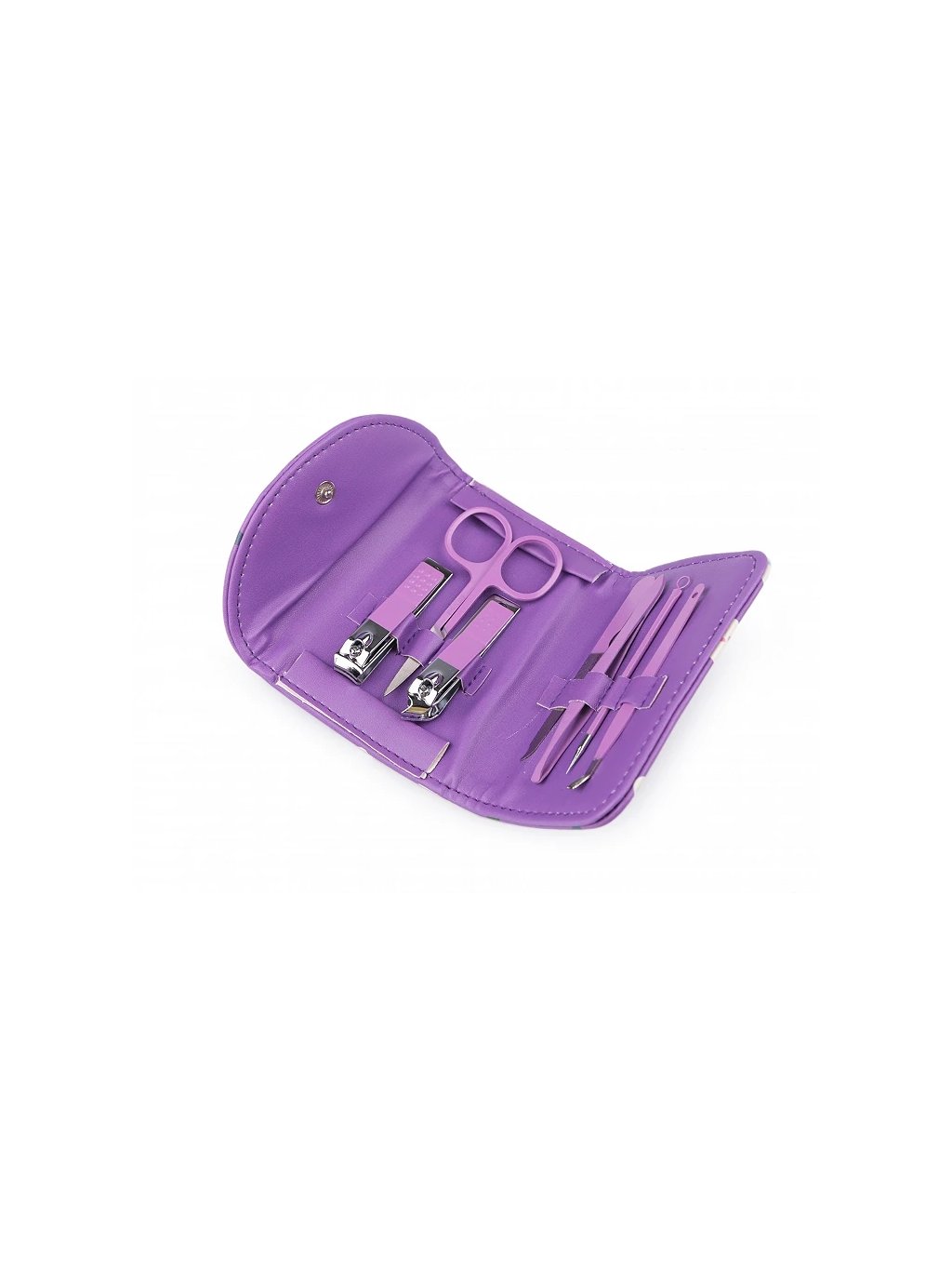 Manikúra ve fialovém pouzdře s květy 7 nástrojů