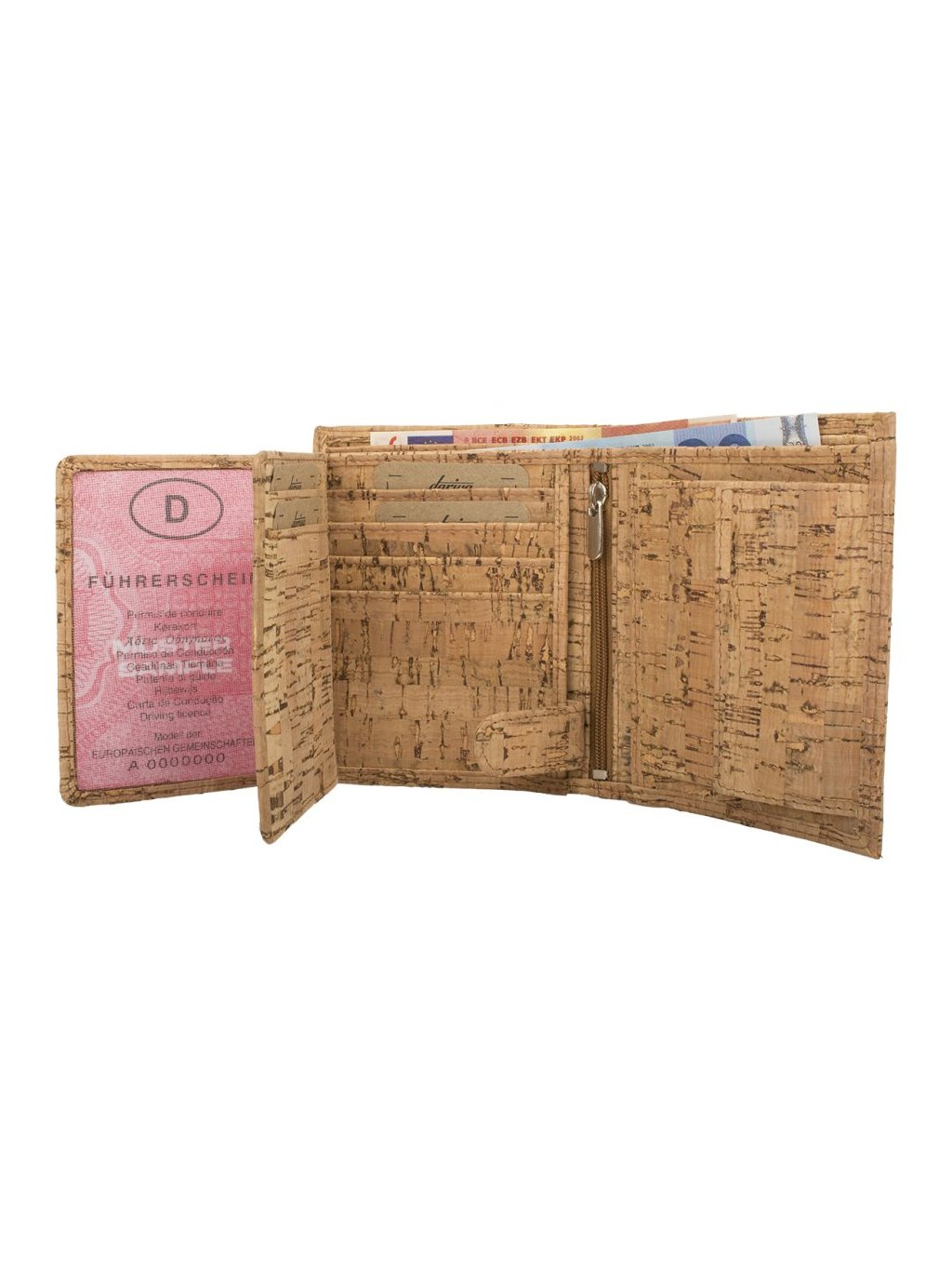 Korek je lehký, odolný a voděodolný přírodní materiál, který skvěle drží tvar a snadno se udržuje. Je 100% veganský, hypoalergenní a získává se šetrným způsobem bez poškození stromů, což z něj dělá ekologickou a udržitelnou volbu. Nepohlcuje pachy, je antibakteriální a každý kus má jedinečnou přírodní strukturu, díky které je každá peněženka originální.
