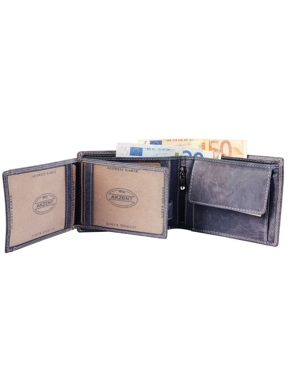 Prostorná pánská peněženka na šířku s vnitřním připínáním pouzdra na doklady na klip. Dvěma přihrádkami na bankovky a vnitřní kapsou na zip. Krásný moderní vzhled. Vyrobeno z pravé kůže. Má devět přihrádek na kreditní karty a dvě průhledné na doklady. Provedení peněženky je na šířku. Výška je 9,5 cm, šířka v základním rozloženém stavu 24 cm, v nerozloženém 12 cm. Pravá kůže