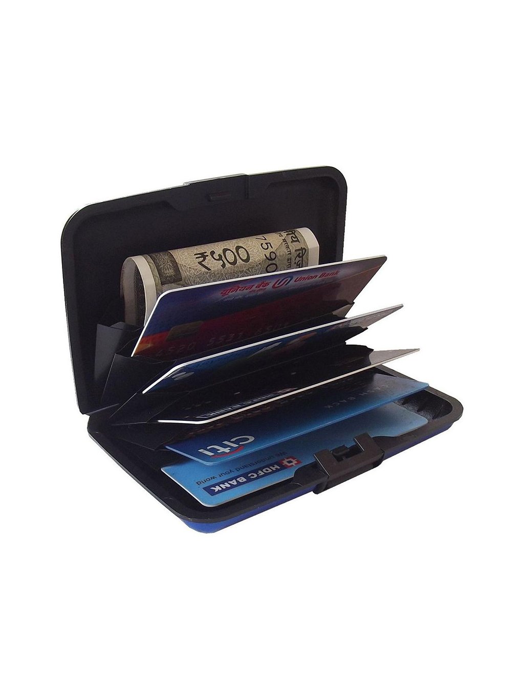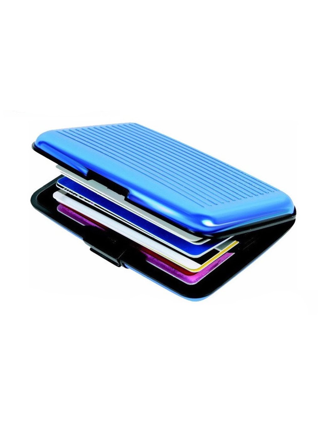 Pevné hliníkové pouzdro na platební karty modré
