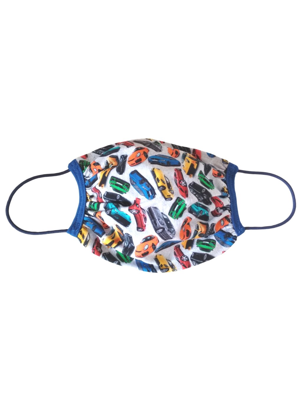Rouška dětská (3/4), dvojitá s kapsou vzor Auta