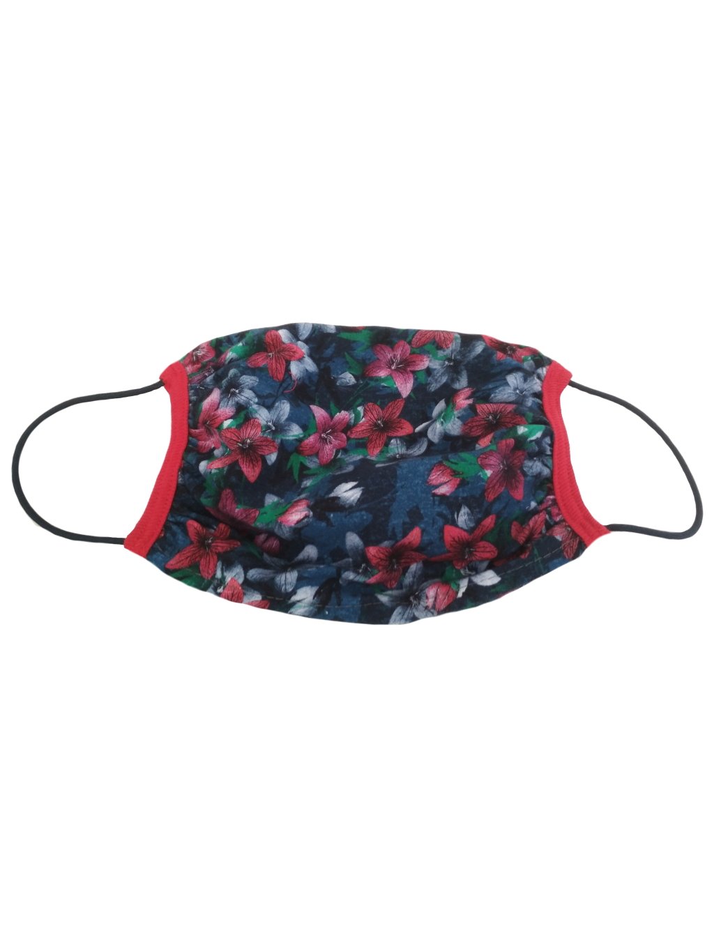 Rouška dvojitá s kapsou vzor Květiny červené