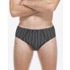 Slipy se širším bokem, pánské šité prádlo. V pasovém kraji je zašitá širší pruženka. V nohavičkách je zašitá úzká pruženka. Slipy jsou vyrobené z materiálu s vypletenými proužky.Materiál je vyroben z vlákna Tencel, které je doplněno bavlnou a elastanem. Úplet je vhodný pro všechny, kteří hledají přírodní materiály. Elastan přidává materiálu pružnost a zlepšuje jeho tvarovou stálost. Prádlo z tohoto materiálu je vhodné pro každodenní nošení.