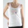 Tílko se širšími ramínky, dámské šité prádlo. Průramky a průkrčník jsou začištěny lemovacími proužky. Tílko je jednobarevné.Materiál je vyroben z bambusového vlákna, které je doplněno elastanem. Úplet je velmi jemný a příjemný na nošení. Do každodenního prádla přináší luxusní hedvábný vzhled.